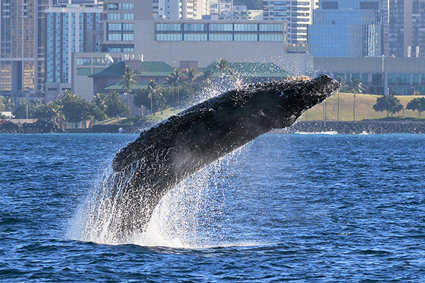 Our Whale Watch departs January through March 2025 from Aloha Tower Marketplace, just 15 minutes away from Waikiki. A whale sighting is guaranteed during the season or you’ll cruise again (transportation optional).